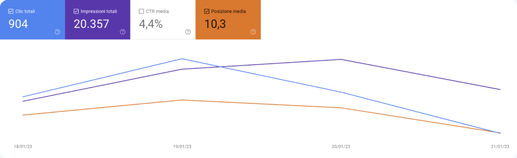 - Clic: quante volte un utente ha fatto “clic” su un link indirizzato al tuo sito su Google.